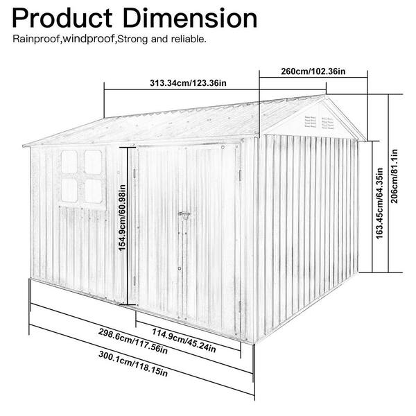 10 ft. W x 8 ft. D Metal Outdoor Storage Shed with Vent, Window and Lockable Doors, White and Yellow (87 sq. ft. )