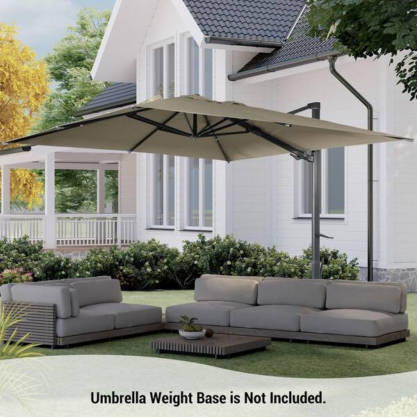 10 ft. x 10 ft. Aluminum Cantilever Umbrella Square Crank Market Umbrella Tilt Patio Umbrella in Tan