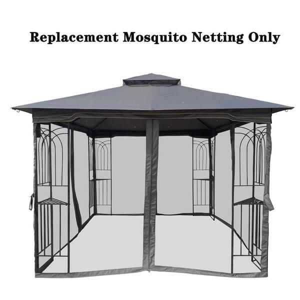 10 ft. x 10 ft. Black Gazebo Replacement Mosquito Netting with Zippers and 4-Side Mesh Walls