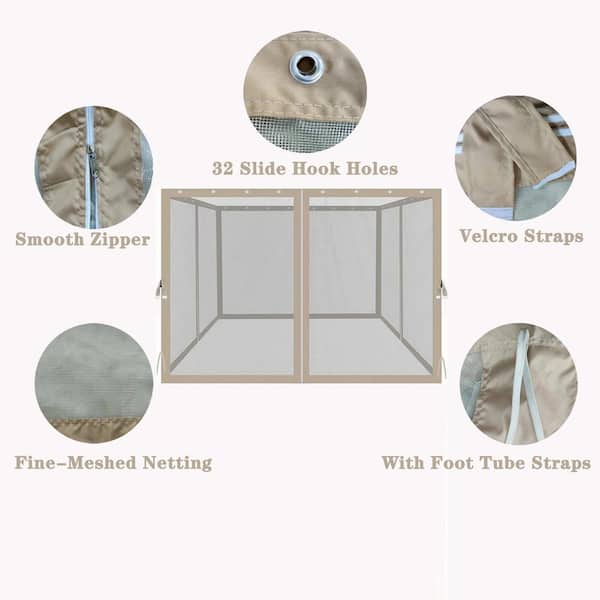 10 ft. x 10 ft. Gazebo Replacement Mesh Mosquito Netting Screen Walls, 4-Panel Sidewalls with Zippers