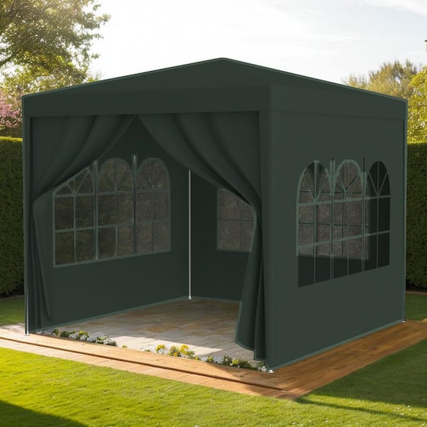 10 ft. x 10 ft. Green Canopy Party Tent Outdoor Heavy Duty Gazebo Wedding Canopy + 4-Removable Walls for Backyard Garden