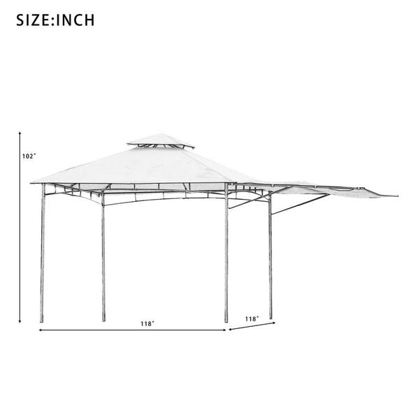 10 ft. x 10 ft. Khaki Outdoor Gazebo Foot Easy Assembly Seasonal Shade UV Protection with Extendable Awning