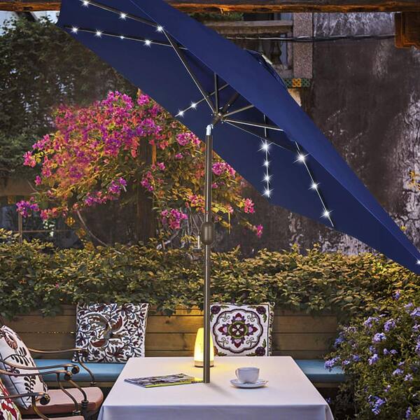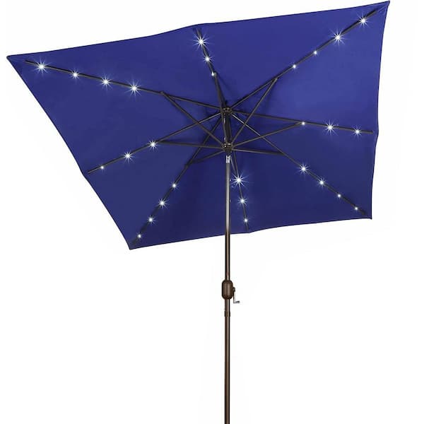 10 ft. x 10 ft. Metal Market Solar Tilt Patio Umbrella in Navy Blue