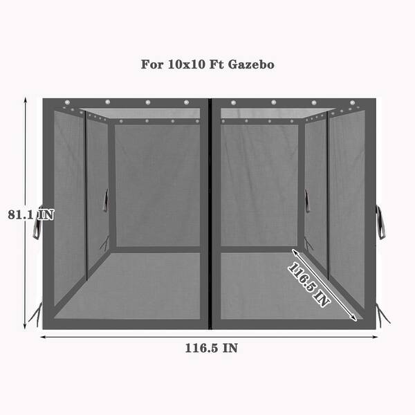 10 ft. x 10 ft. Polyester Gazebo Replacement Mosquito Netting with Zippers, 4-Side Mesh Walls, Black