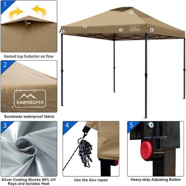 10 ft. x 10 ft. Pop Up Canopy Tent for Commercial Garden Wedding Camping Party,3 Adjustable Height with Ropes and Stakes