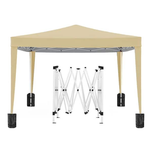 10 ft. x 10 ft. Portable Beige Pop-Up Canopy, Folding Tent with 4 Removable Sidewalls + Carry Bag + 4-Pieces Weight Bag