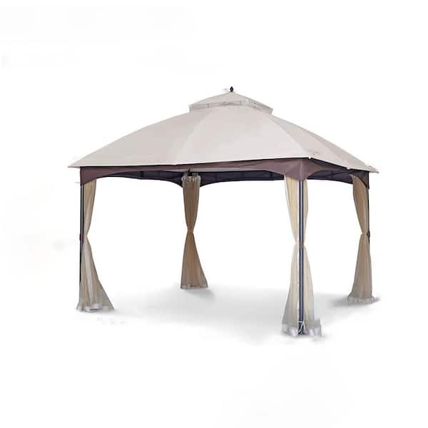 10 ft. x 12 ft. Beige Heavy Duty Metal Gazebo with Double Roof Canopy, Mosquito Net, for Garden, Patio, Yard, Poolside