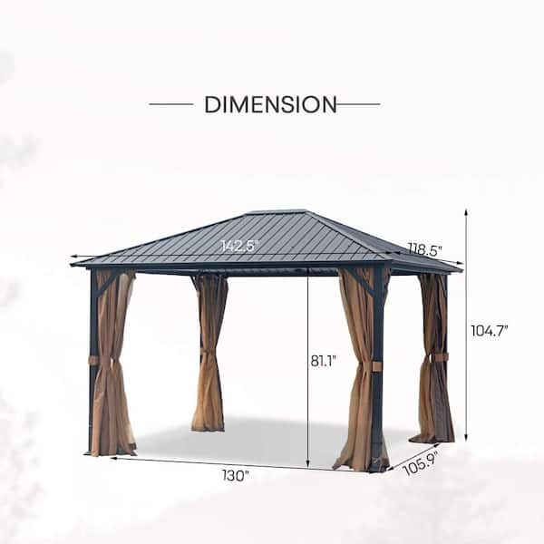 10 ft. x 12 ft. Hardtop Metal Gazebo Pergola with Mosquito Nets, Outdoor Canopies Tent for Gardens, Patio, Backyard