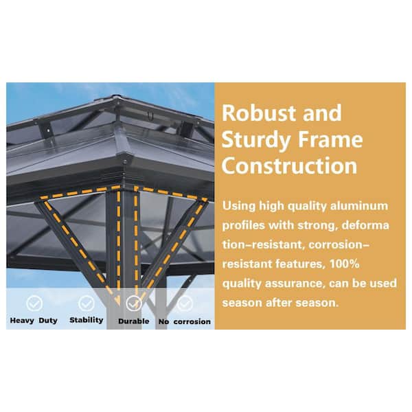• Spacious 10 x 12 ft. design for outdoor seating and dining