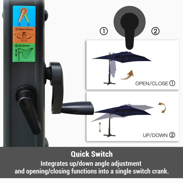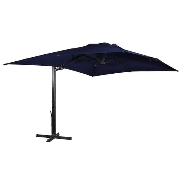 10 ft. x 13 ft. Aluminum Cantilever Umbrella Rectangular Crank Market Umbrella Tit Patio Umbrella in Navy Blue