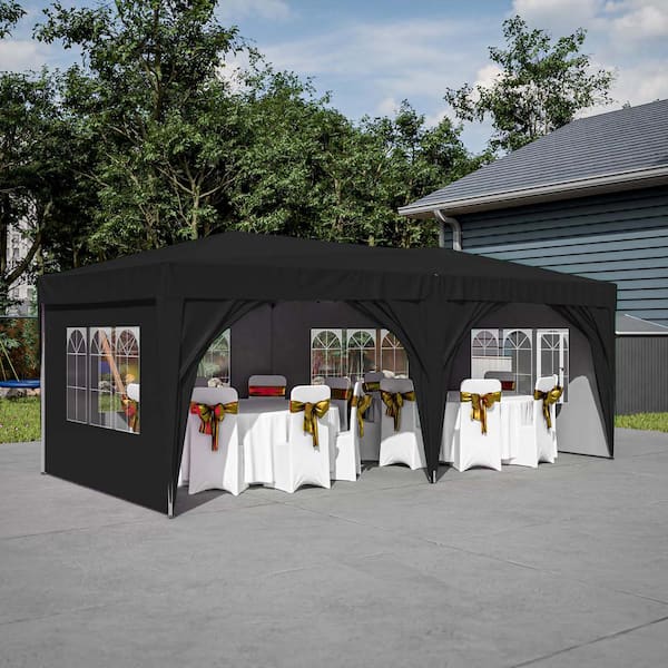 10 ft. x 20 ft. Black Outdoor Pop Up Canopy Tent Portable Party Wedding Tent with Carry Bag