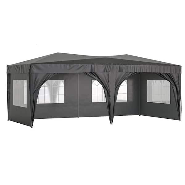 10 ft. x 20 ft. Black Pop-Up Outdoor Portable Party Folding Tent with 6 Removable Sidewalls, carry Bag, 6 Weight Bags
