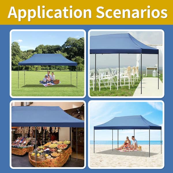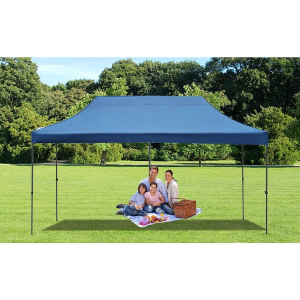 10 ft. x 20 ft. Blue Outdoor Pop Up Canopy Tent with 6-Sidewalls, 3-Height Adjustable, Roller Bag
