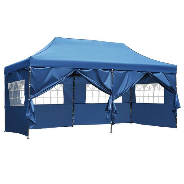 10 ft. x 20 ft. Blue Pop Up Canopy Tent with 6 Sidewalls and Roller Bag