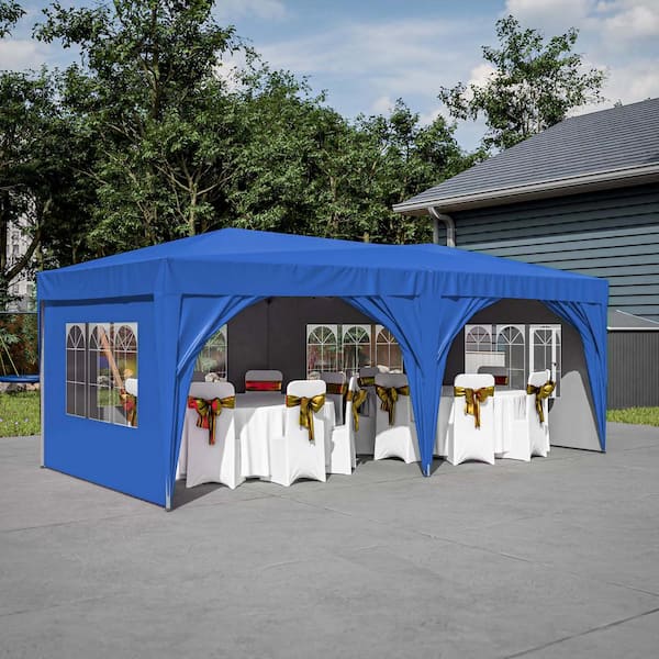 10 ft. x 20 ft. Blue Pop Up Outdoor Canopy Tent Portable Folding Canopy Party Tent with 3 Adjustable Heights