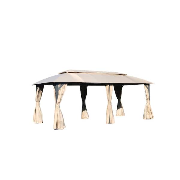 10 ft. x 20 ft. Brown Metal Gazebo Party Tent with Double Roofs, Curtains, Mosquito Nettings for Patio, Backyard, Lawn