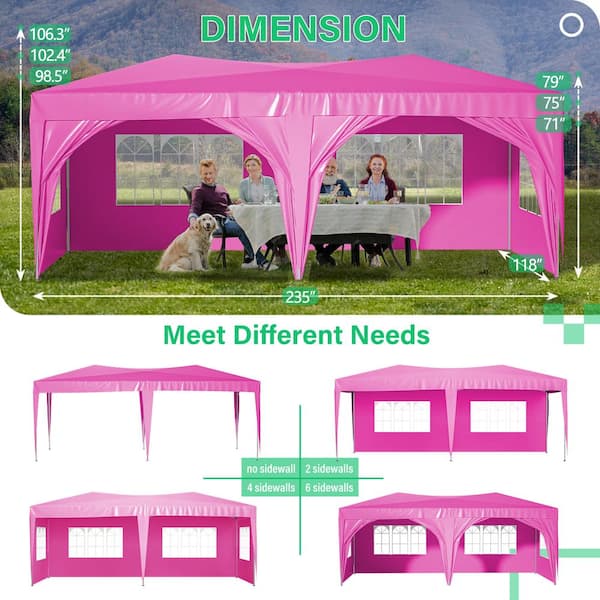 10 ft. x 20 ft. Outdoor Adjustable Pop Up Canopy Tent with Carry Bag, Sand Bags, Ropes, Stakes, Pink for Parties