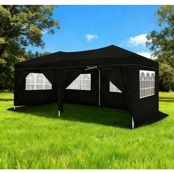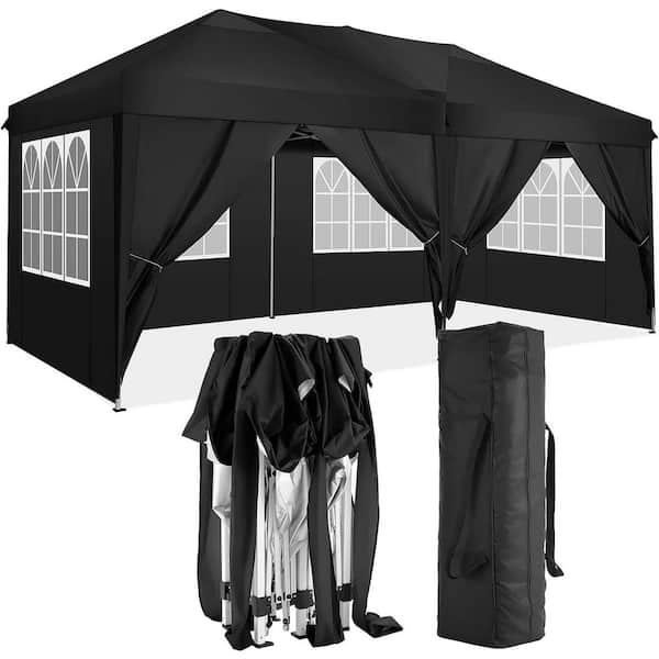10 ft. x 20 ft. Pop Up Canopy Outdoor Portable Party Folding Tent with 6 Removable Sidewalls, Carry Bag in Black