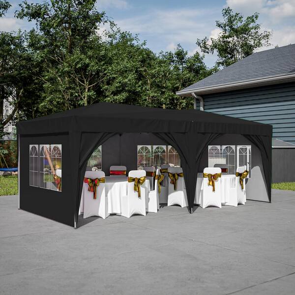 10 ft. x 20 ft. Pop Up Canopy Tent with 6 Sidewalls, Outdoor Canopy Waterproof with 3 Adjustable Heights, Black