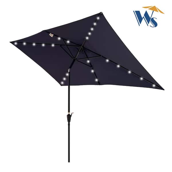 10 ft. x 6.5 ft. Aluminum Pole Solar LED Market Patio Umbrellas with Crank and Push Button Tilt in Navy Blue