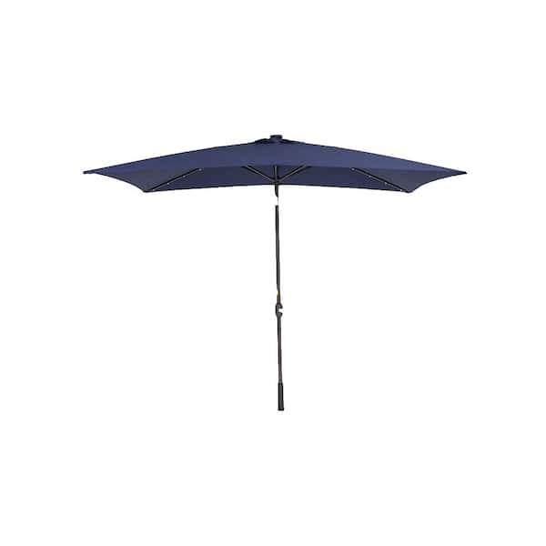10 ft. x 6.5 ft. Mental Market Patio Umbrella with LED Light in Dark Blue