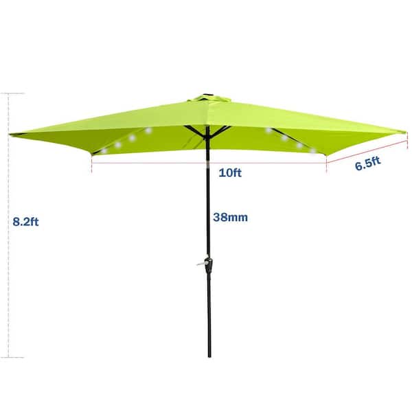 10 ft. x 6.5 ft. Rectangular Market Solar Push Button Tilt Patio Umbrella in Lime Green with Crank and LED Lights