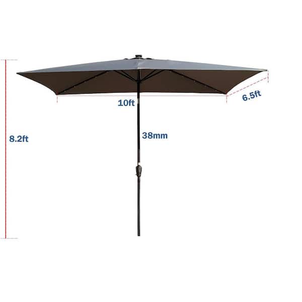 10 ft. x 6.5 ft. Rectangular Solar LED Lighted Patio Market Umbrella with Crank and Push Button Tilt in Anthracite
