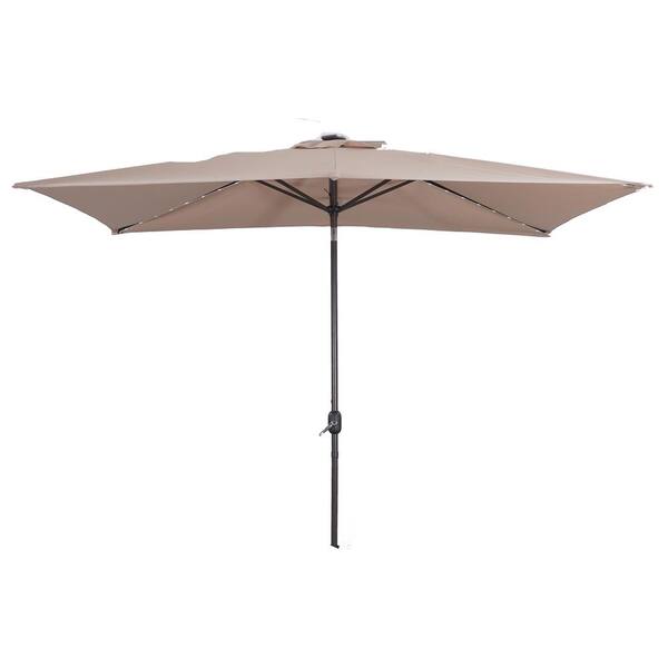 10 ft. x 7 ft. Outdoor Market Patio Umbrella Flip Umbrella with Crank and LED Light in Sand