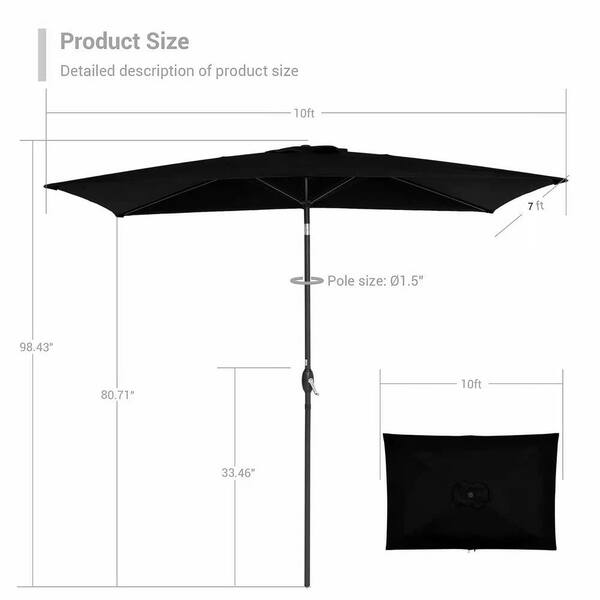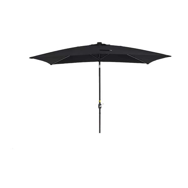 10 ft.x 7 ft. Rectangle Solution-Dyed Fabric Aluminum Market Patio Umbrella in Black with Frosted Solar LED Lighting