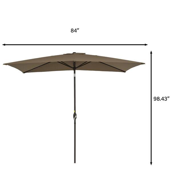 10 ft. x 7 ft. Rectangular Market Patio Umbrella with Push Button Tilt and Crank Lift in Brown