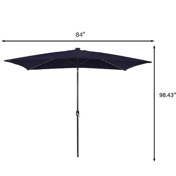 10 ft. x 7 ft. Rectangular Market Solar Patio Umbrella with LED Lights in Navy