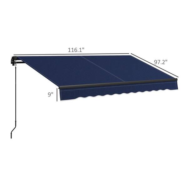 10 ft. x 8 ft. Blue Retractable Awning Patio Sunshade Shelter with Manual Crank UV Resistant, Aluminum Frame (1-Pack)