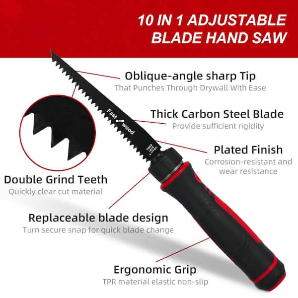 10 in. 1 Multi Blades Hand Saw with Quick Blade Change Mechanism for Cutting Drywall Wood Metal Plastic