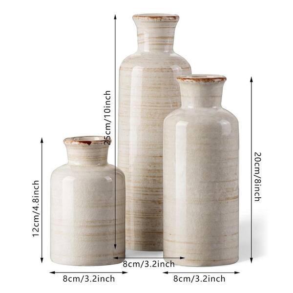 10 in. Ivory Round Ceramic Decorative Vase, 3 Piece