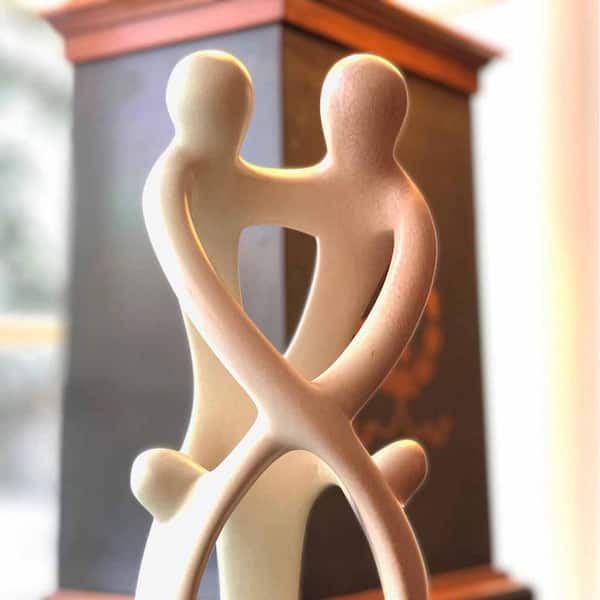 10 in. Natural Stone 2-Parents 2-Children Soapstone Family Sculpture