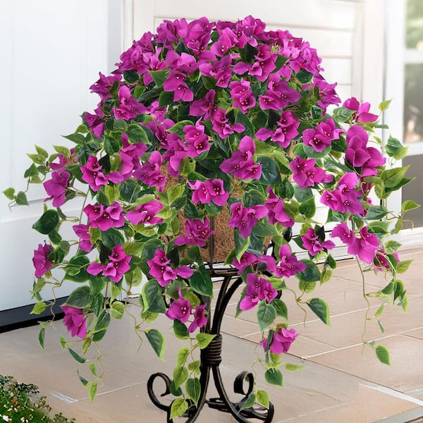 • Lifelike artificial Bougainvillea flowers add a splash of color