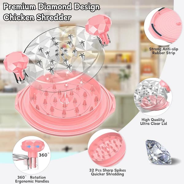 10 in. Tool Twist Kitchen Meat Shredder, BPA Free Grinder Machine with Brush for Steak, Pork, Chicken Breast, Pink