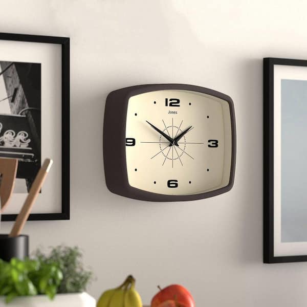 10 in. W Rectangular Retro Brown Analog Plastic Wall Clock