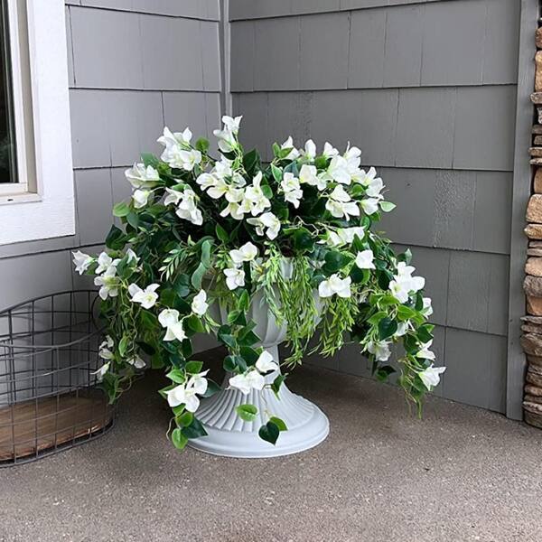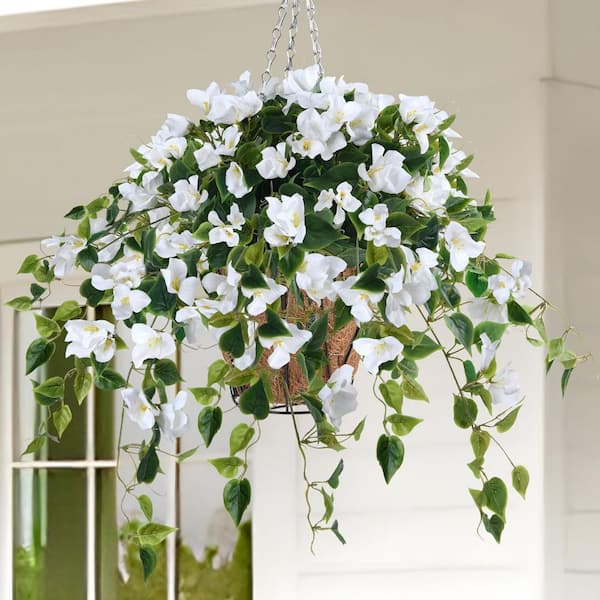 10 in. White Artificial Bougainvillea Silk Vine Flowers Hanging Basket