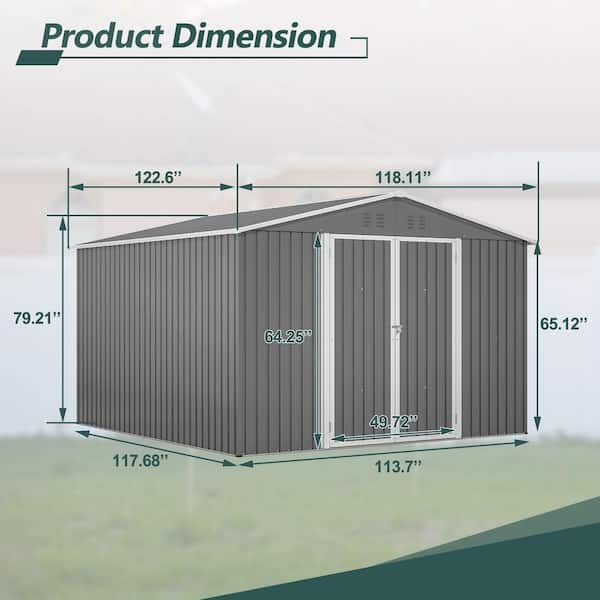 10 x 10 ft. Outdoor Storage Shed, Large Metal Tool Sheds w/ Updated Frame Structure and Lockable Doors Gray (93 sq. ft.)