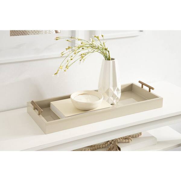 10 x 24 Beige and Gold Lipton Narrow Decorative Tray with Polished Metal Handles