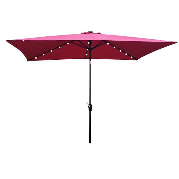 10 x 6.5 ft. Burgundy Rectangular Patio Umbrella Solar LED Lighting Outdoor Market Umbrella with Crank and Button Tilt