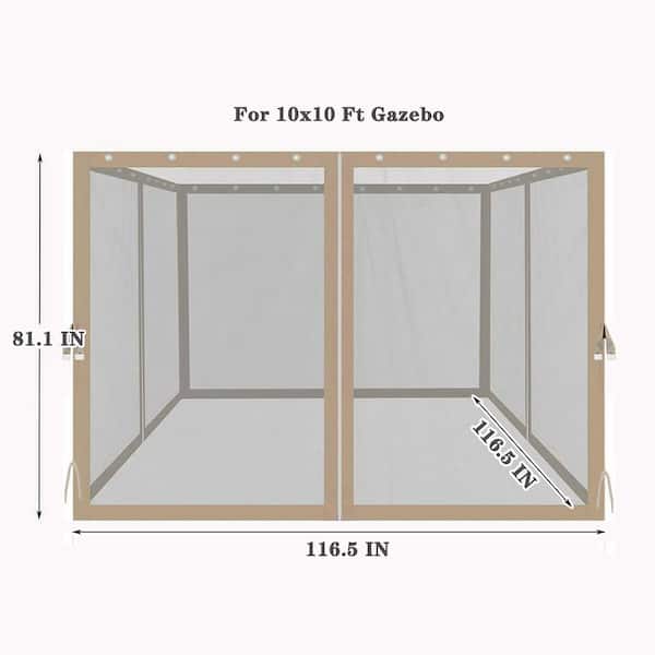 10 x10 Ft Beige Polyester Gazebo Replacement Mosquito Netting with Zippers, 4-Side Mesh Walls for Patio Gazebos