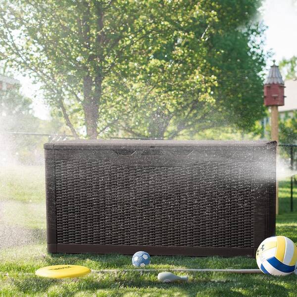 100 Gal. Large Dark Brown Resin Deck Box with Side Handles and Lockable Lid