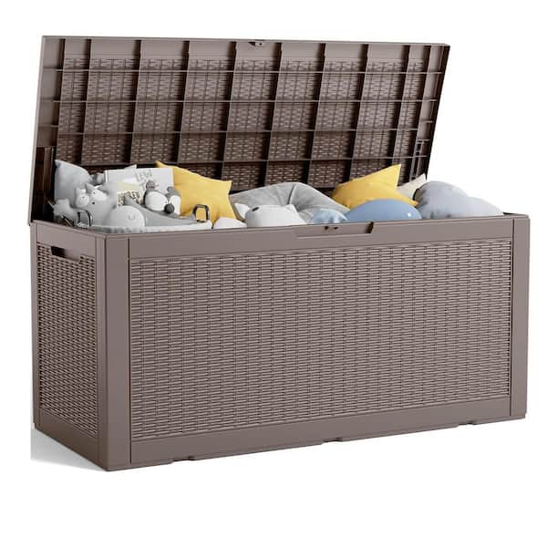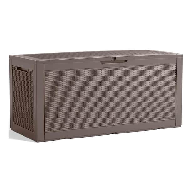 100 Gal. Large Light Brown Waterproof Resin Deck Box with Lockable Lid
