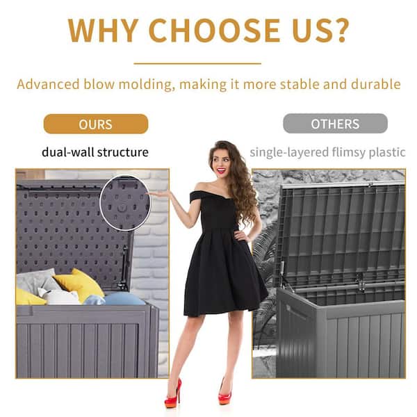 100 Gallon Resin Outdoor Deck Box Waterproof, Lockable Storage Containers for Patio Furniture Cushions, Pool, Brown