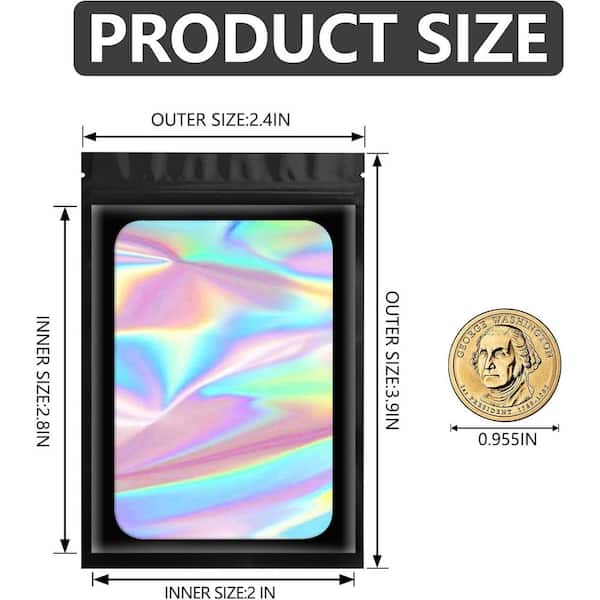 100 Piece Black Holographic Mylar Bags Clear Resealable Foil Pouch for Food Jewelry Lipgloss Eyelash Packaging