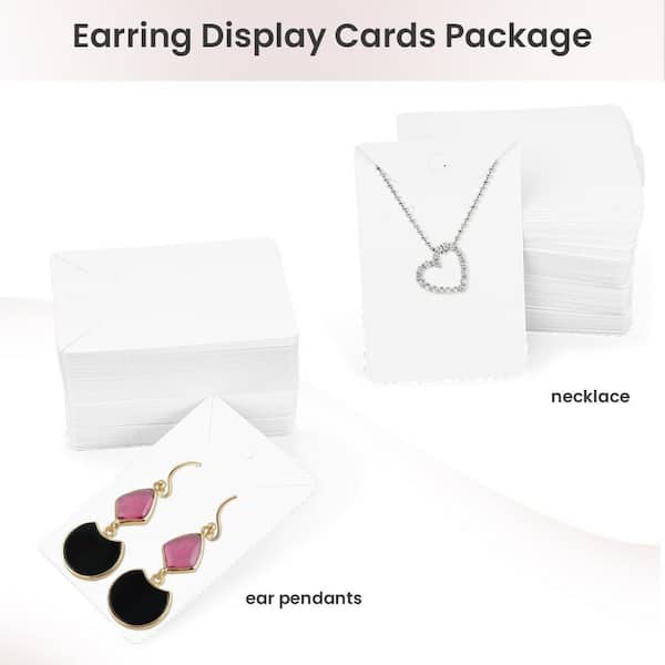 100 Piece Earring Cards with Self Adhesive Bags and Earring Backs for Jewelry Display Holder Cards 3.5 x 2.4 in. White