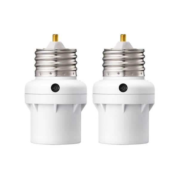 100-Watt E26/E27 LED/INC/CFL/Halogen Dusk to Dawn Light Control Sensor Socket 360-Degree Sensor Rotation, White (2-Pack)