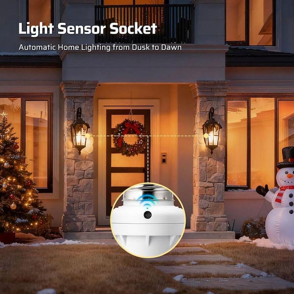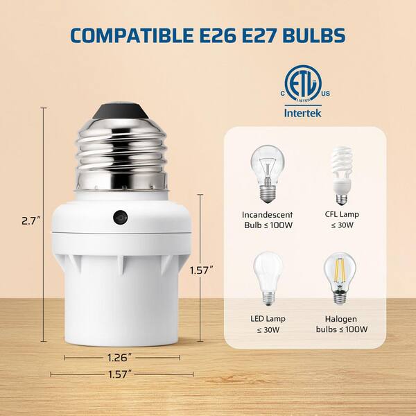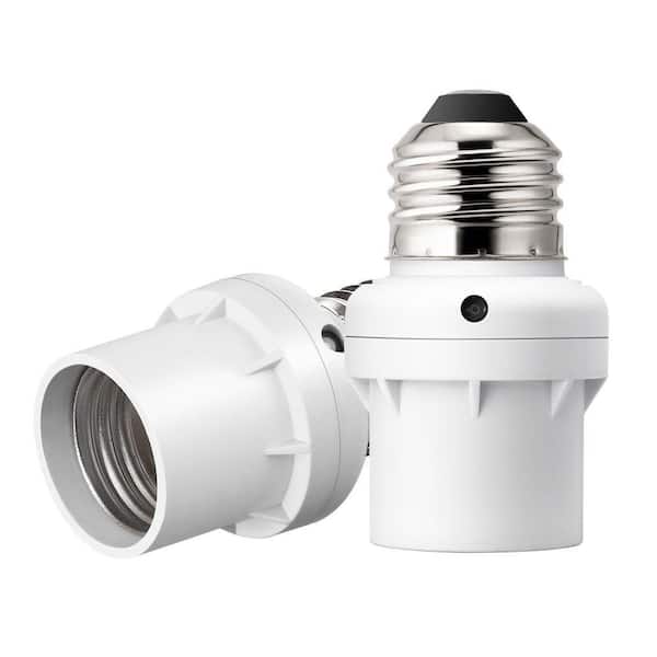 100-Watt Incandescent/CFL/LED/Halogen Screw-In Dusk to Dawn Light Control Sensor Socket, White (2-Pack)